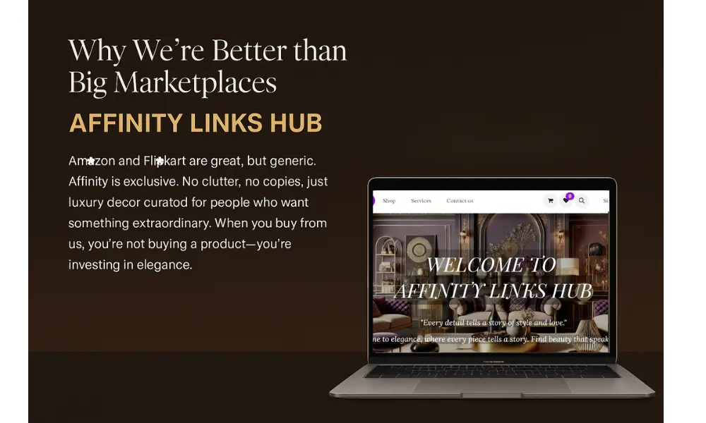We don't merely sell things—we design experiences. All of Affinity Links Hub's chandeliers, wall decorations, and adornments are selected or handcrafted by artisans who appreciate refinement. Contrary to mass marketplaces, our items are quality-checked for excellence, sensitivity, and longevity.